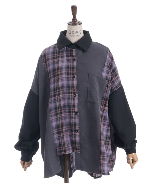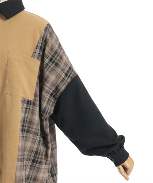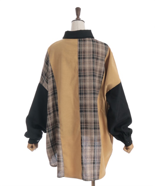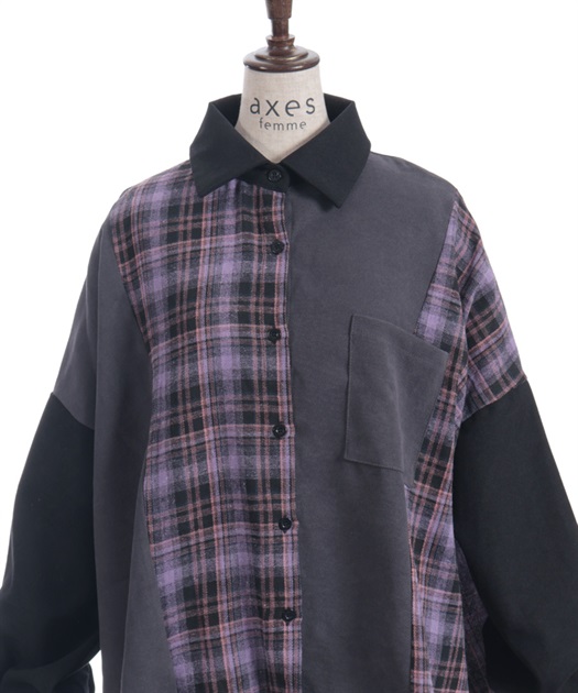 チェック柄パッチワークシャツ【期間限定価格】