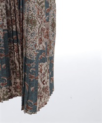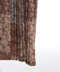 異なる柄を組み合わせたパッチワーク風デザインがポイント。広がりすぎない程よいフレアシルエットで、自然な立体感を演出します。ウエスト切替位置が高めなので、すっきりとした印象で着用できるのも魅力。