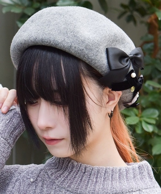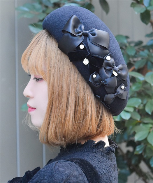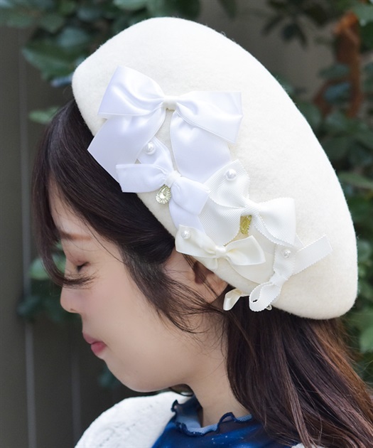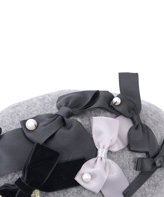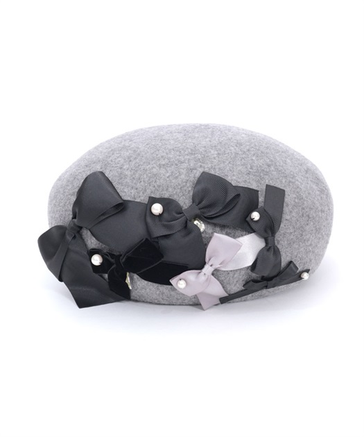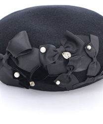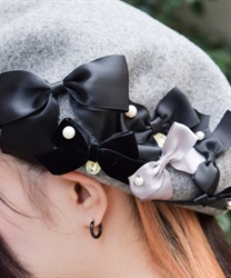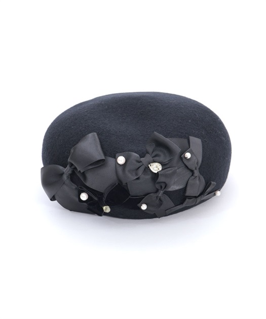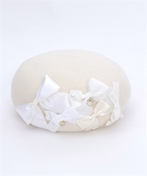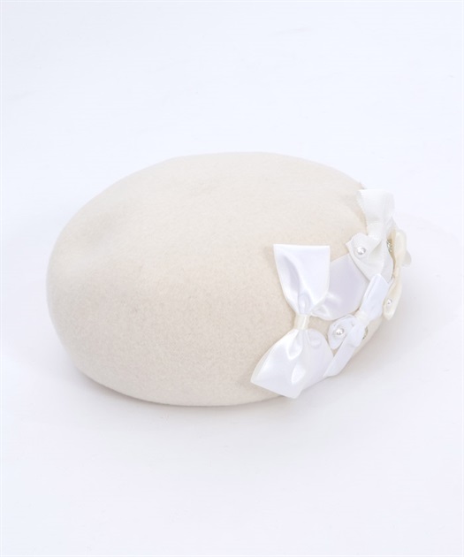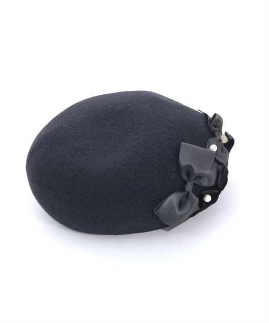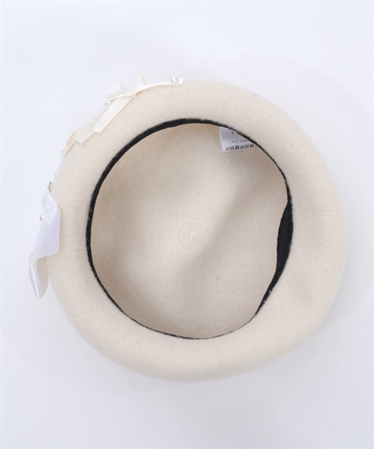 リボン使いが華やかなウール素材のベレー帽です。