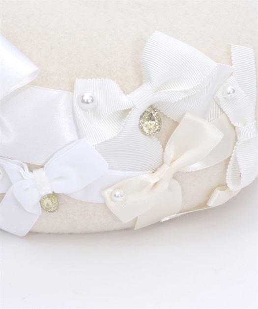 素材の異なるリボンに、パールやビジューをあしらった上品なデザイン。