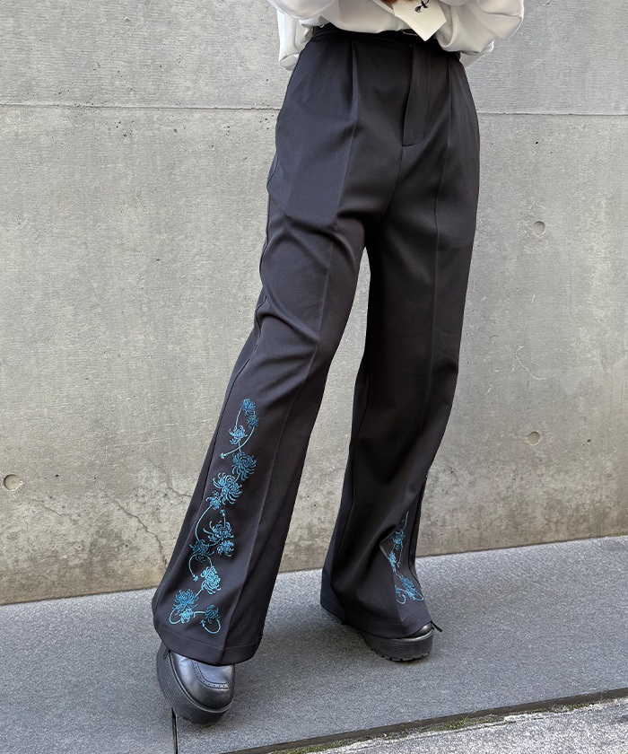 菊刺繍フレアパンツ