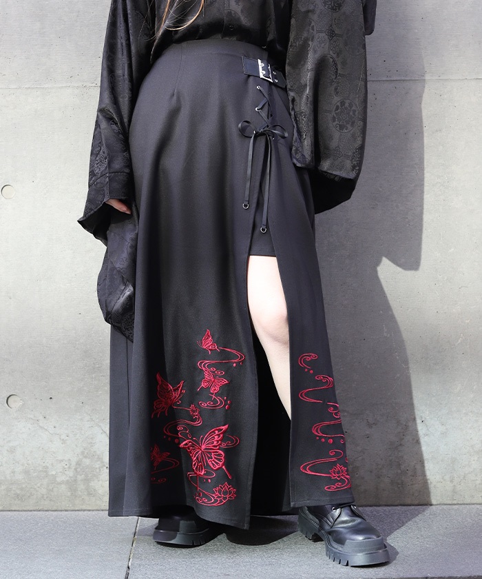 蝶刺繍アシメスカート