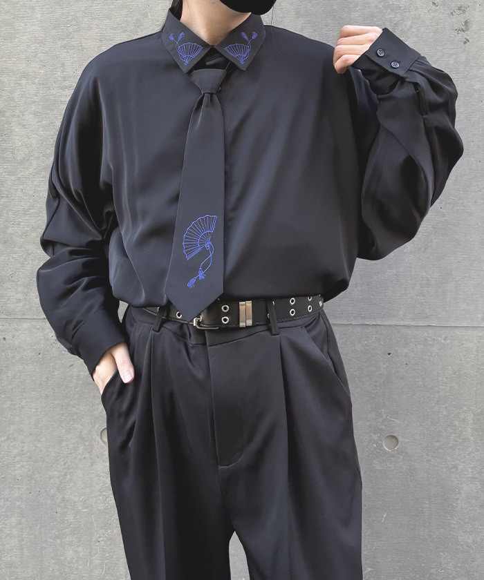 タイ付扇子刺繍シャツ