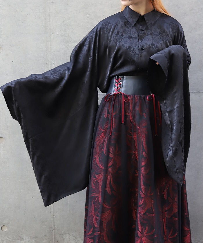 蛇×蓮刺繍ロングシャツ