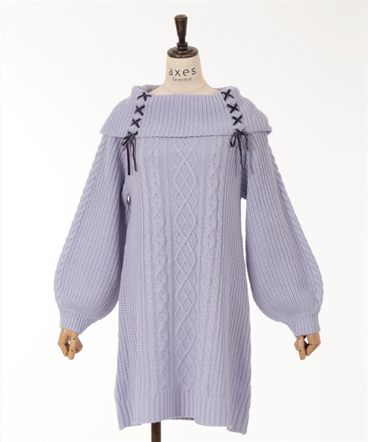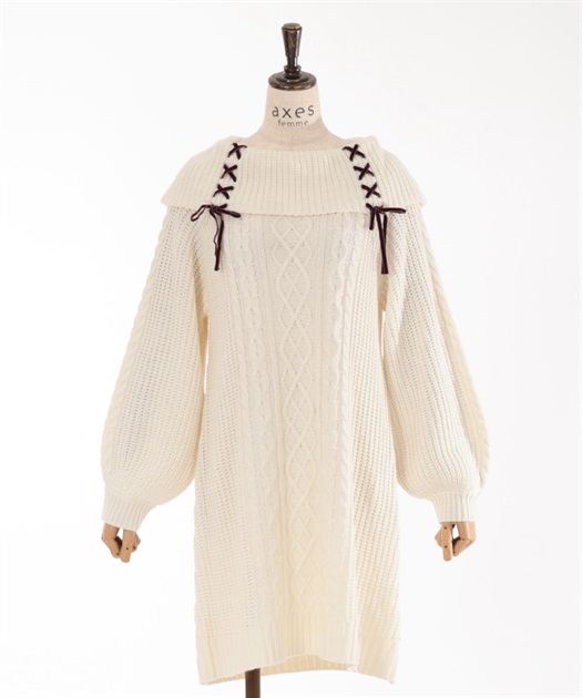 W編み上げニットチュニック